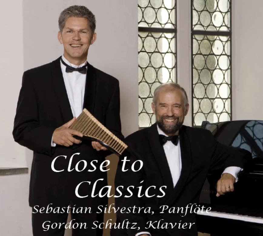 Das Programm enthält Werke aus der unsterblichen Klassik, beschwingte Folkloristik, beliebte Lieder ohne Worte bearbeitet für Panflöte und Klavier. Der Panflötenvirtuoso Sebastian Silvestra ist durch Konzert- und pädagogische Tätigkeit bestens in der Schweiz bekannt.